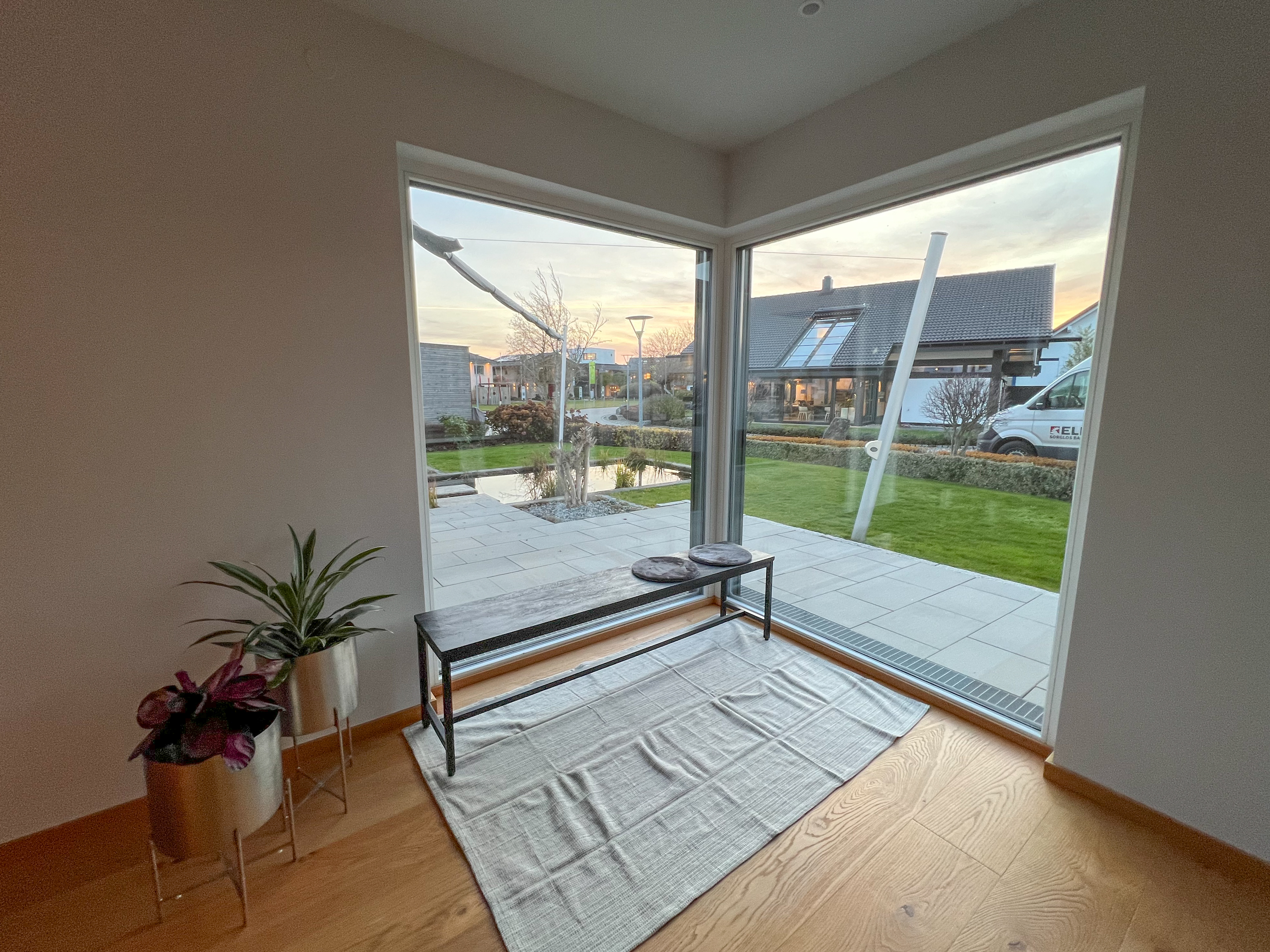 Neben geringem Energieverbrauch beeindruckt das ELK Effizienzhaus 189 aber vor allem mit durchdachter Raumgestaltung und schönem Design. Der Eingangsbereich ist puristisch zurückhaltend und hält neugierige Blicke fern, die Gartenseite begeistert mit toller Optik und großen Fensterflächen. Die Architektur des Hauses ist perfekt – für nachhaltiges, energiesparendes Wohnen und für das Leben seiner Bewohner.