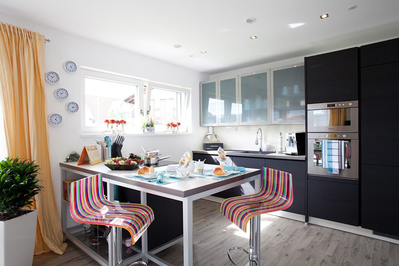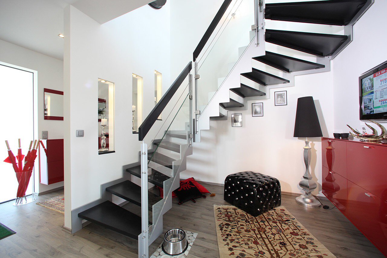Die elegante und hochwertige Architektur vom ELK Effizienzhaus 189 setzt sich im Inneren konsequent fort. Die Räume sind durchdacht angelegt, es gibt ein klares Raumkonzept, das zeitgemäße Wohnansprüche ohne Wenn und Aber erfüllt. Offenheit und Privatsphäre gehen eine sinnvolle Kombination ein, große und hohe Räume auf beiden Ebenen lassen jede Freiheit bei Einrichtung und Design.