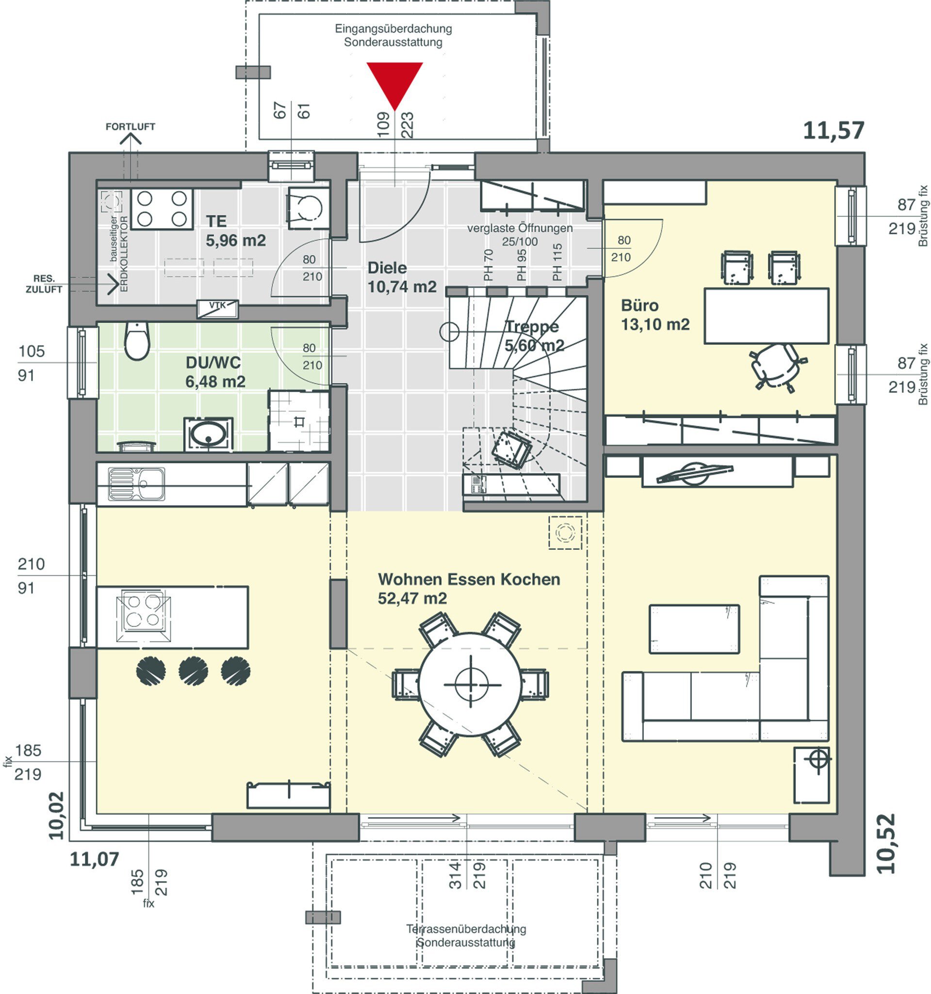 Das ELK Effizienzhaus 189 vereint einzigartigen Wohnkomfort mit geringstem Energieverbrauch. Aufgrund ausgezeichneter Dämmung und wärmebrückenfreier Architektur gibt es keine unnötigen Wärmeverluste, modernste Haustechnik benötigt wenig Energie und bietet allerhöchsten Wohnkomfort.