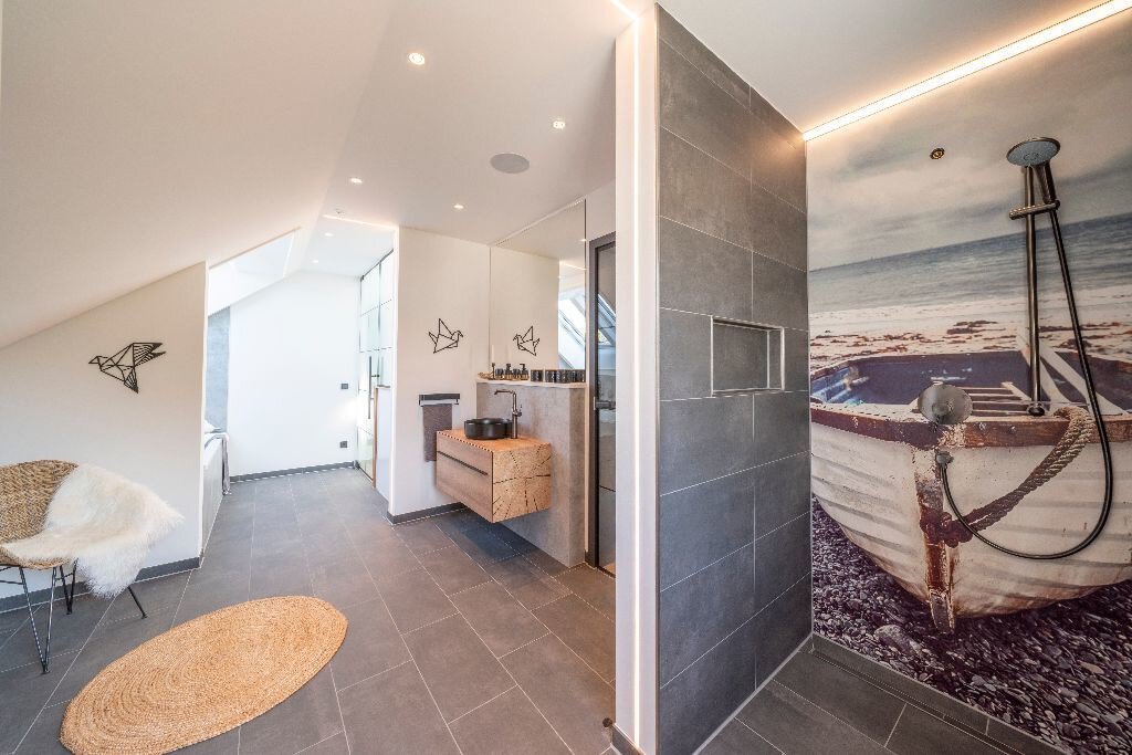 Neben dem Komfort ging es den Entwicklern von CasaMina schwerpunktmäßig um die elektrische Effizienz des Hauses. Nichts wird verschwendet. Die Hülle ist sowieso KfW-Effizienzhaus 40 (bei Fischerhaus der Standard). Dazu kommt, dass die gesamte Technik bis ins Detail auf Strom-Sparsamkeit optimiert ist. Von der Beleuchtung bis zum Home-Office und der Sicherheitsanlage: Die Steuerung dafür läuft smart digital.