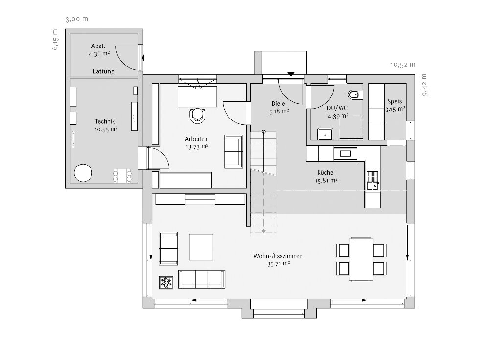 Die ganze dafür erforderliche Gebäudetechnik hat FischerHaus, salopp gesagt, in eine einzelne Kiste gepackt. Daran erinnert das kompakte Technikmodul, das bereits im Werk vorinstalliert wurde. Das Modul ist auf der Baustelle schnell montiert und spart Platz. So gewinnt das Bau-Paar zusätzlich einen Extra-Raum im Haus.