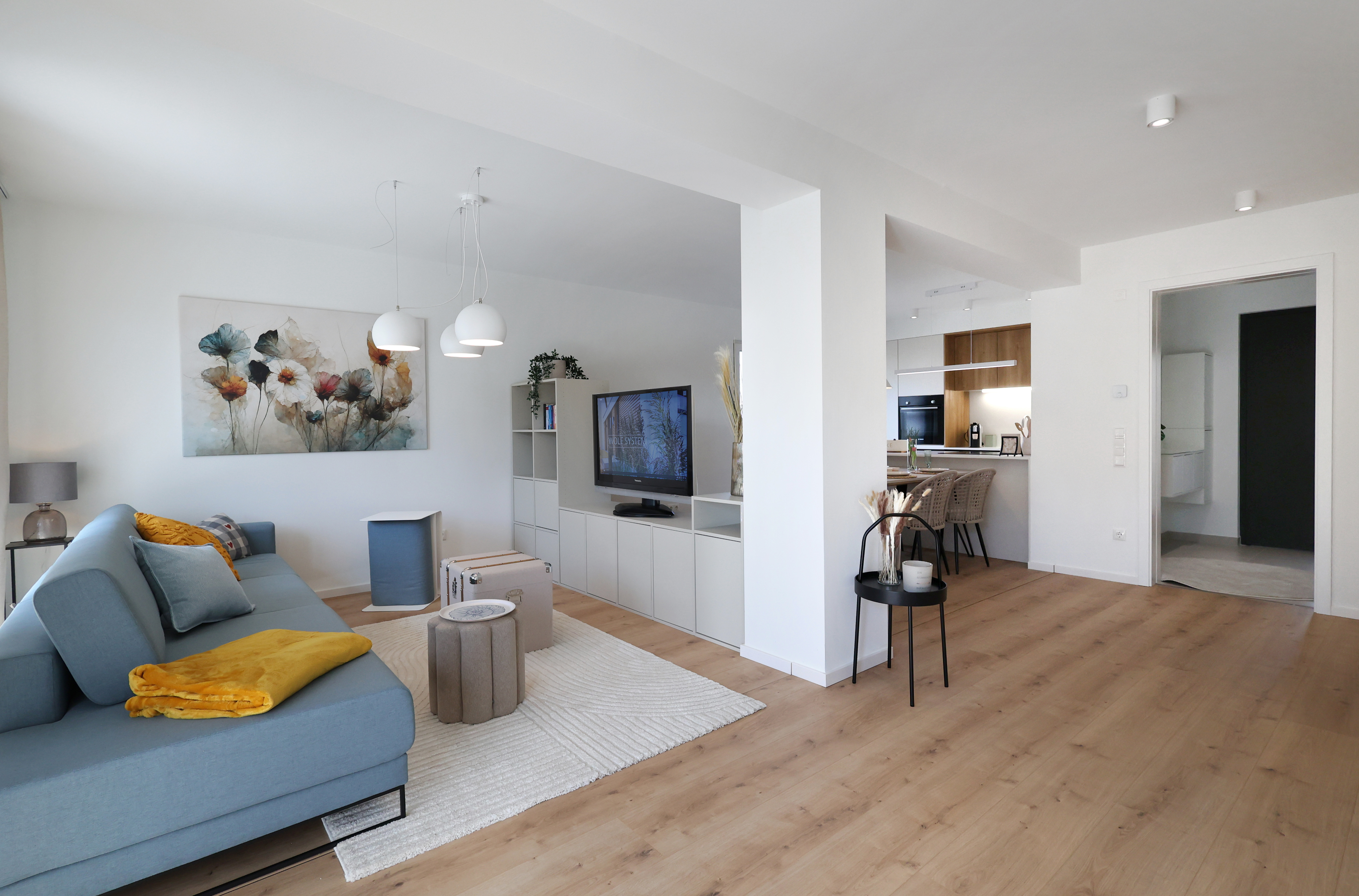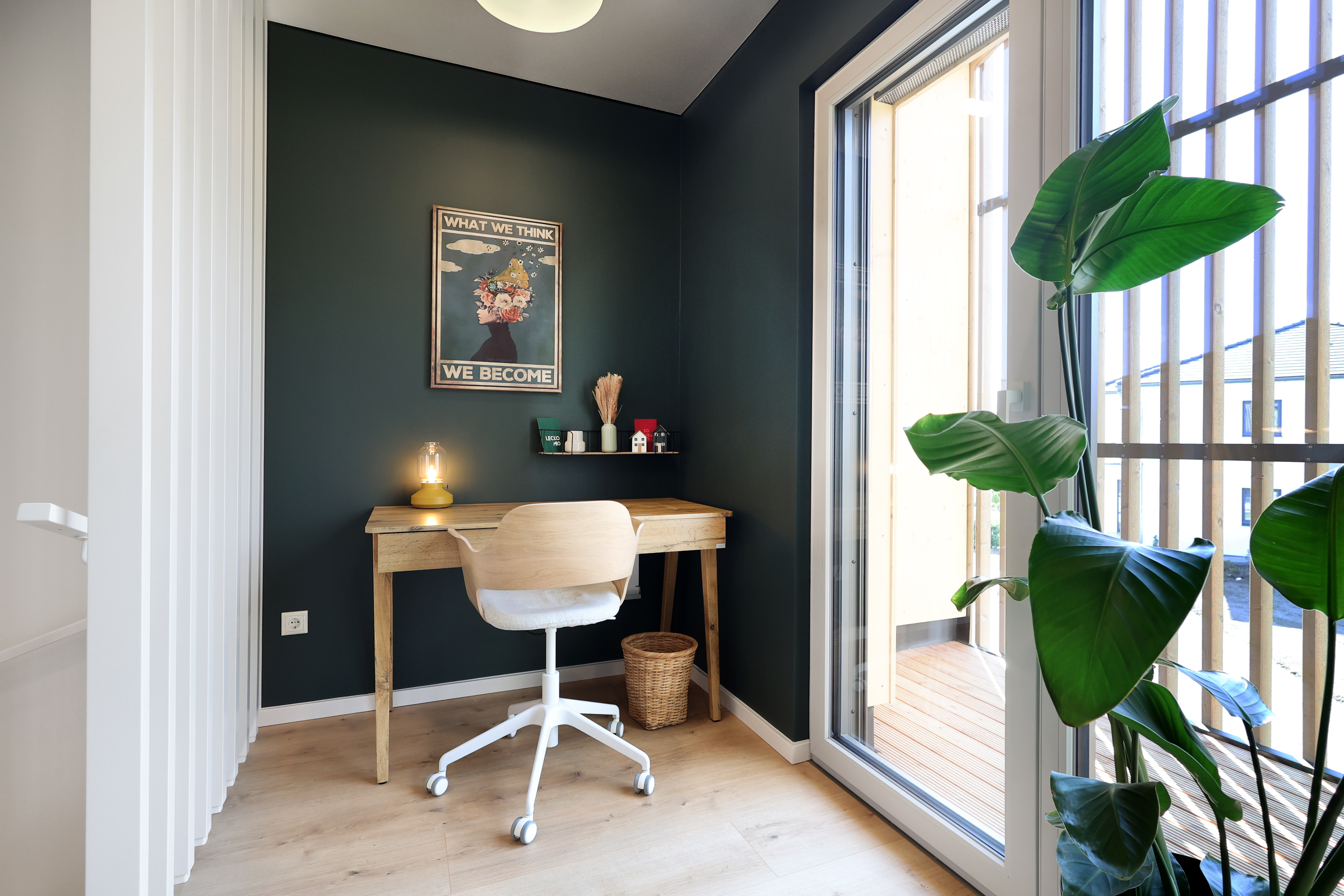 Hoher Vorfertigungsgrad im Werk reduziert Bauzeit, Transporte und CO₂-Ausstoß – ressourcenschonend und effizient. - Intelligente Raumaufteilung: