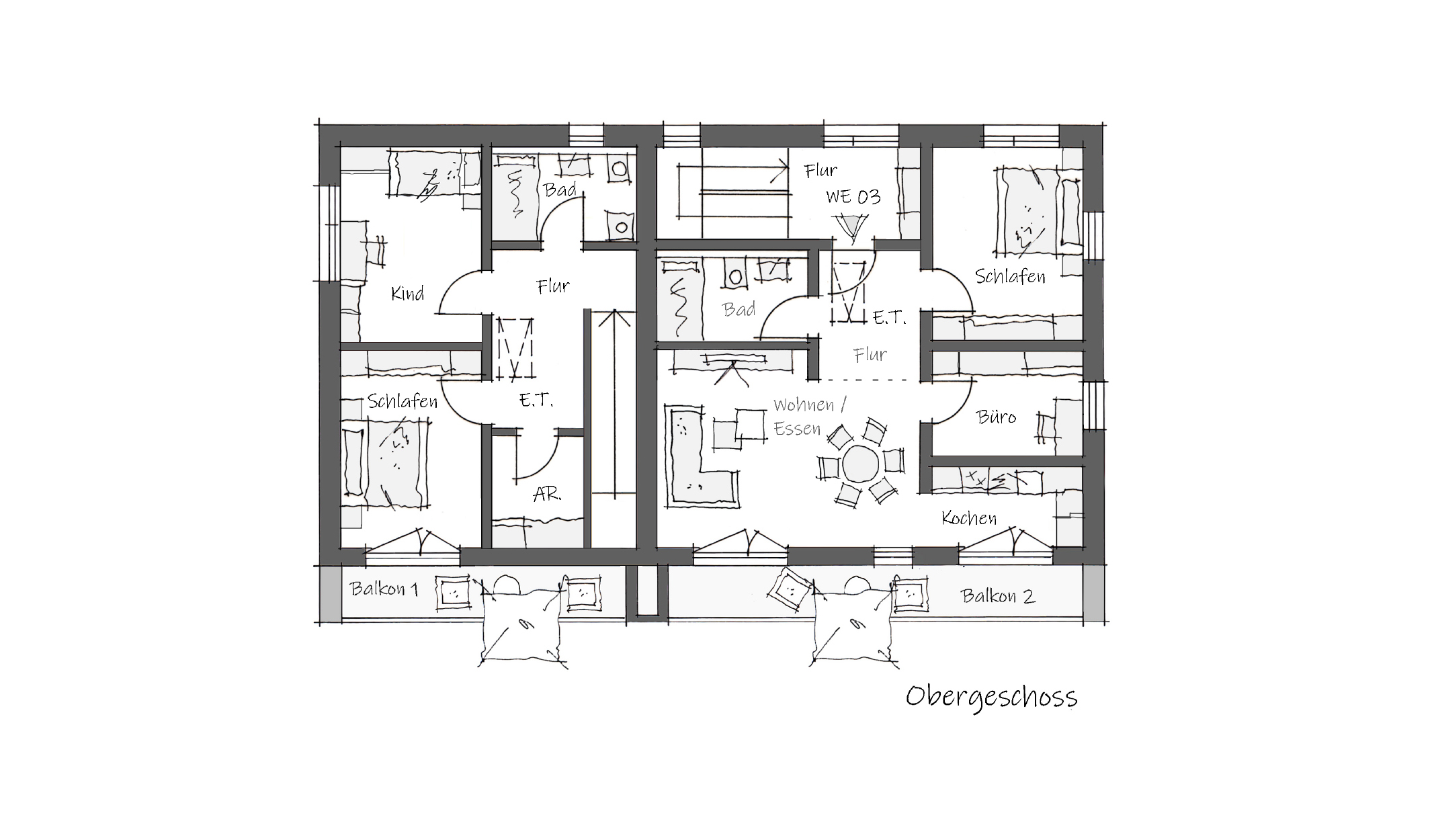 Modulbauweise erlaubt individuelle Anpassung – vom Zweifamilienhaus bis zum großzügigen Einfamilienhaus mit ca. 230 m² Wohnfläche. - Zeitlose Architektur: