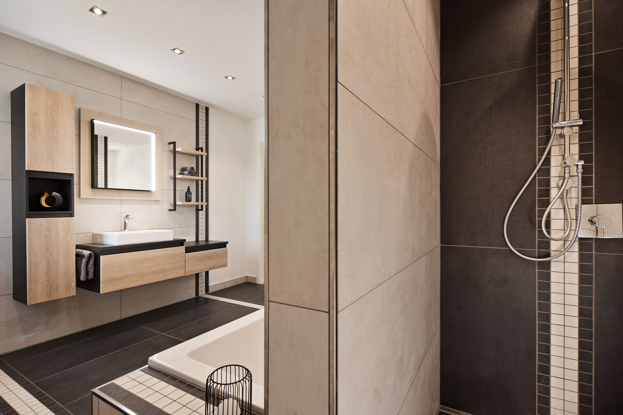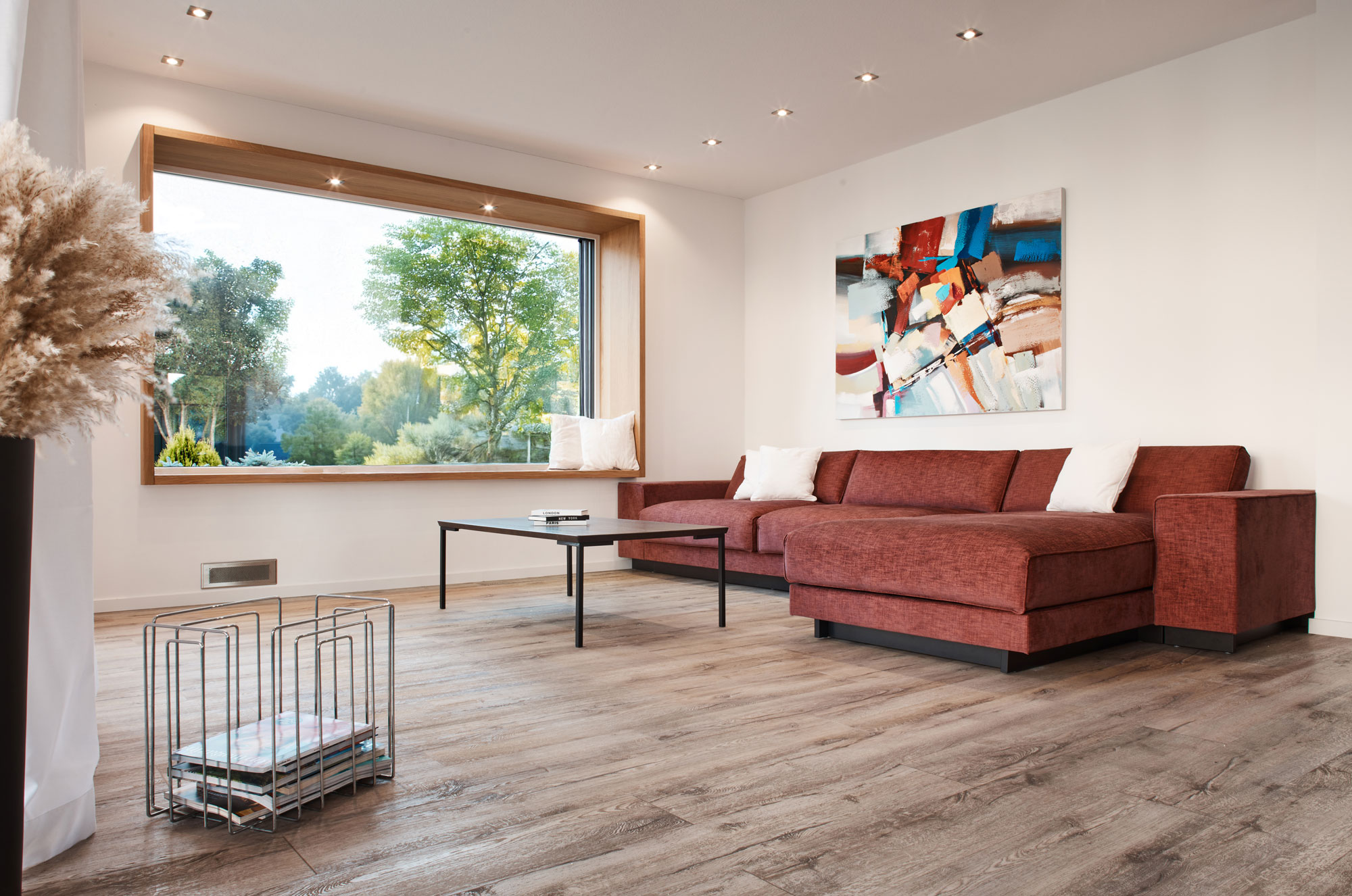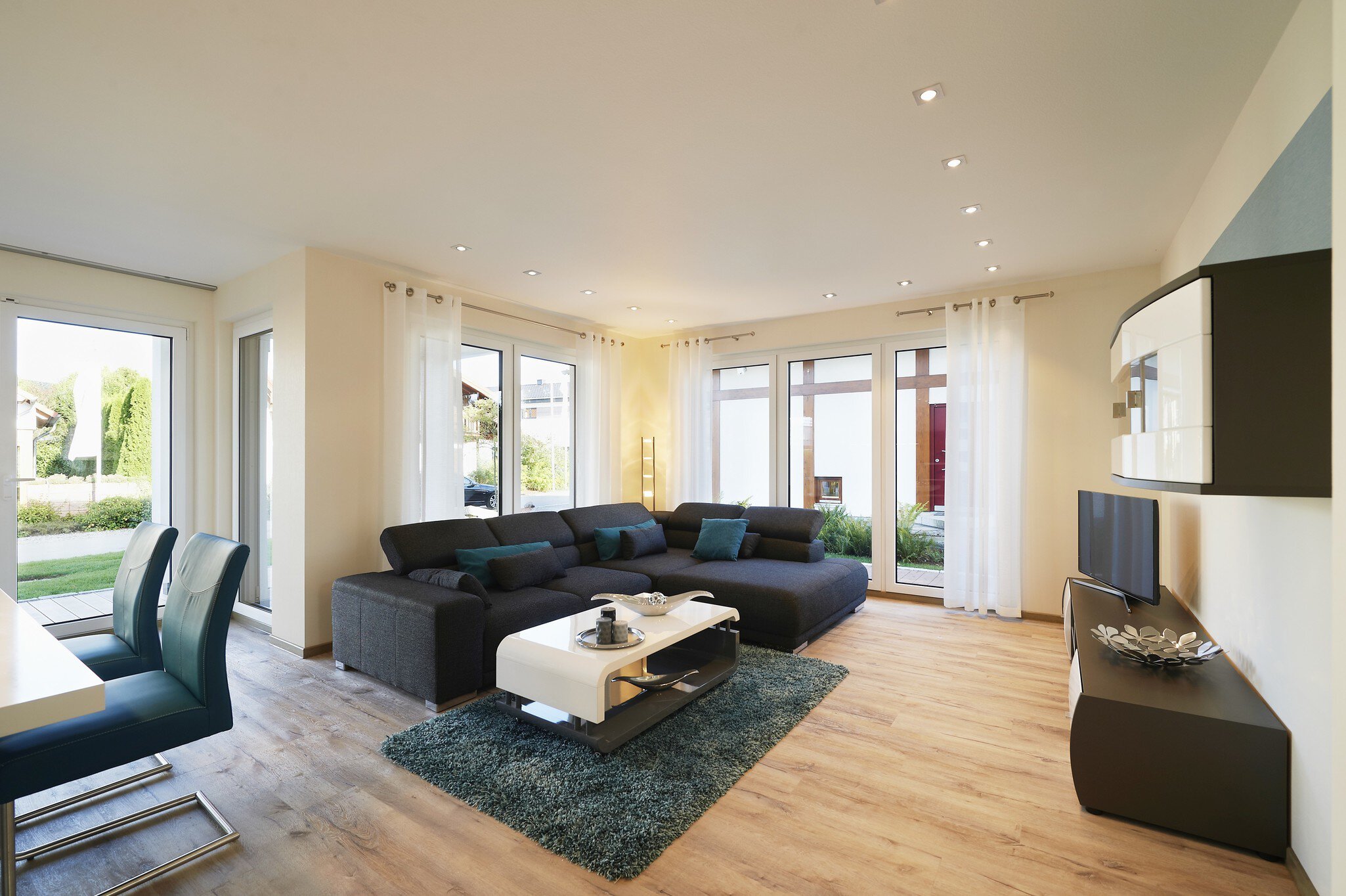 Klare Formen und kubische Elemente unterstreichen den markanten Charakter der Stadtvilla Montana.An der strahlend weißen Fassade setzen dunkle Applikationen wirkungsvolle Akzente und betonen die großzügigen Verglasungen, die dem Innenleben des Hauses eine moderne, helle und freundliche Atmosphäre verleihen.