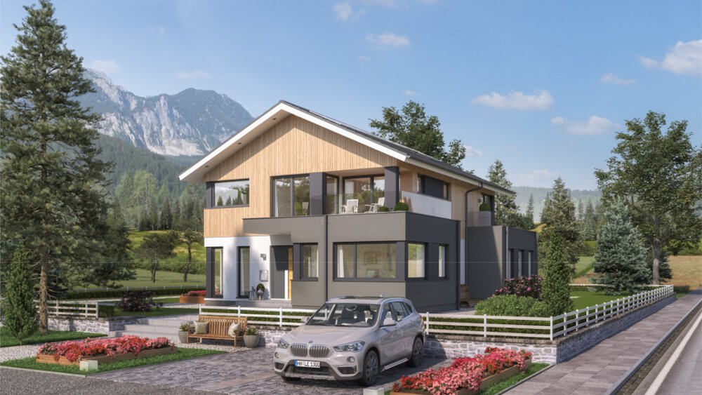 Das Musterhaus Selection-E-176 ist der alpine Wohntraum von Schwabenhaus auf rund 221 m².