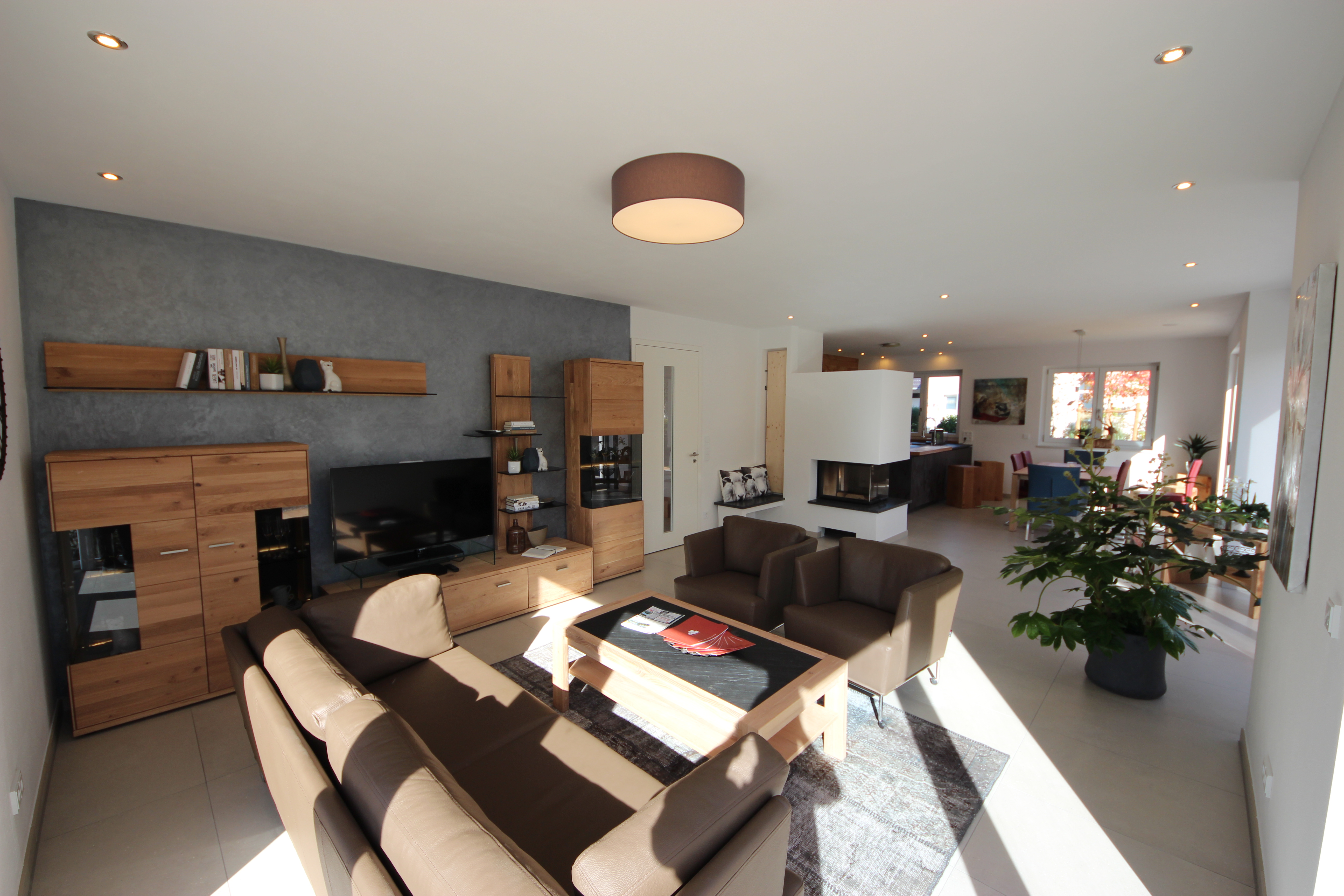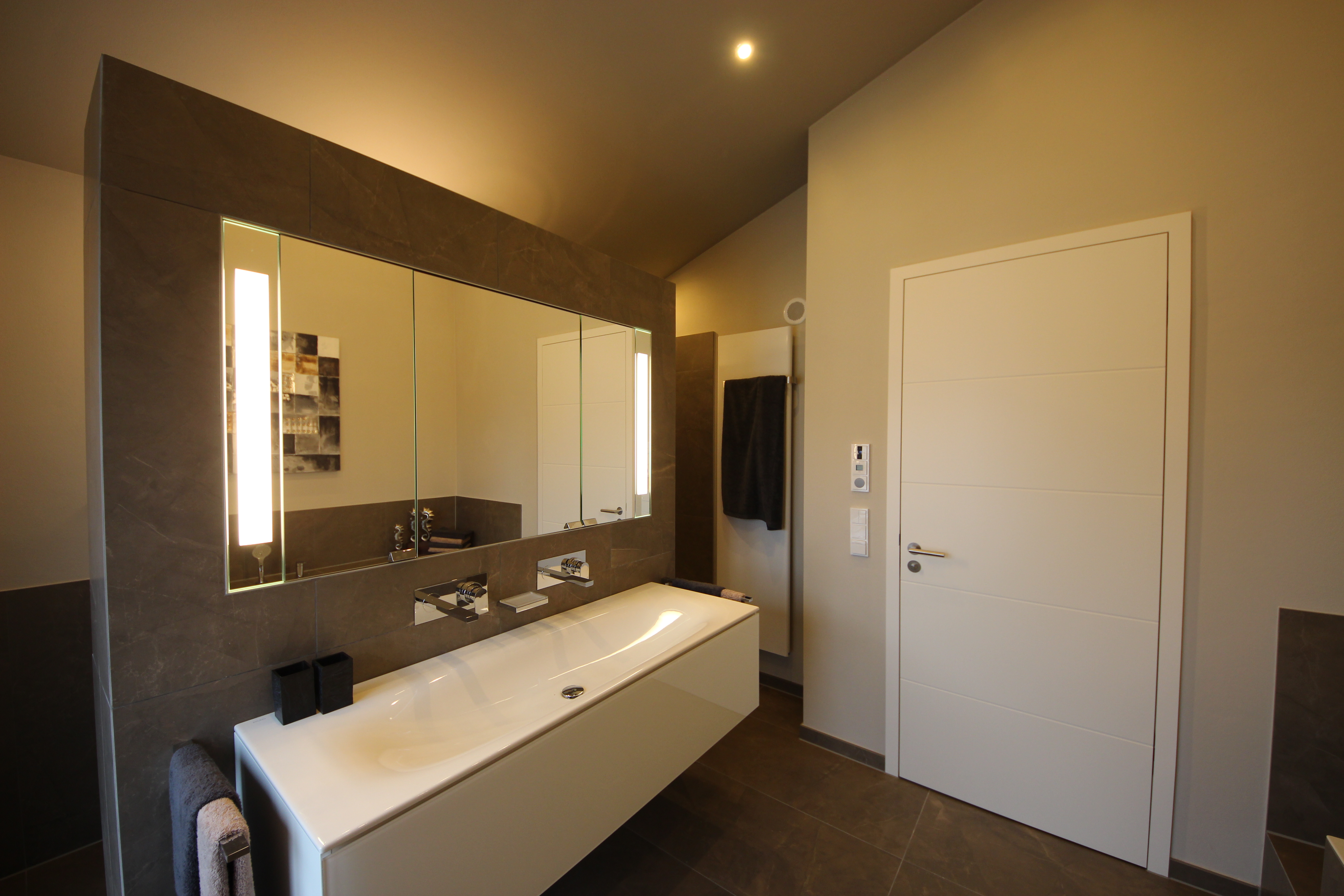 Massiv. Vielseitig. Stark. Das als KfW Effizienzhaus 40 entwickelte Musterhaus verfügt neben einem wärmegedämmten Keller (Nutzfläche: 90.68 m²), welcher als Hobbyraum ausgebaut ist, einer zentralen Lüftungsanlage sowie Ziegelklimadecken auch über ein Ziegelmassivdach. Beheizt wird das Musterhaus durch eine höchst effiziente Grundwasserwärmepumpe. Zudem verfügt das Musterhaus über ein Smart Home System, wodurch sich Jalousien, Licht, Heizung, Lüftung und Türkommunikation über eine einzige zentrale Steuerungseinheit regeln lassen.