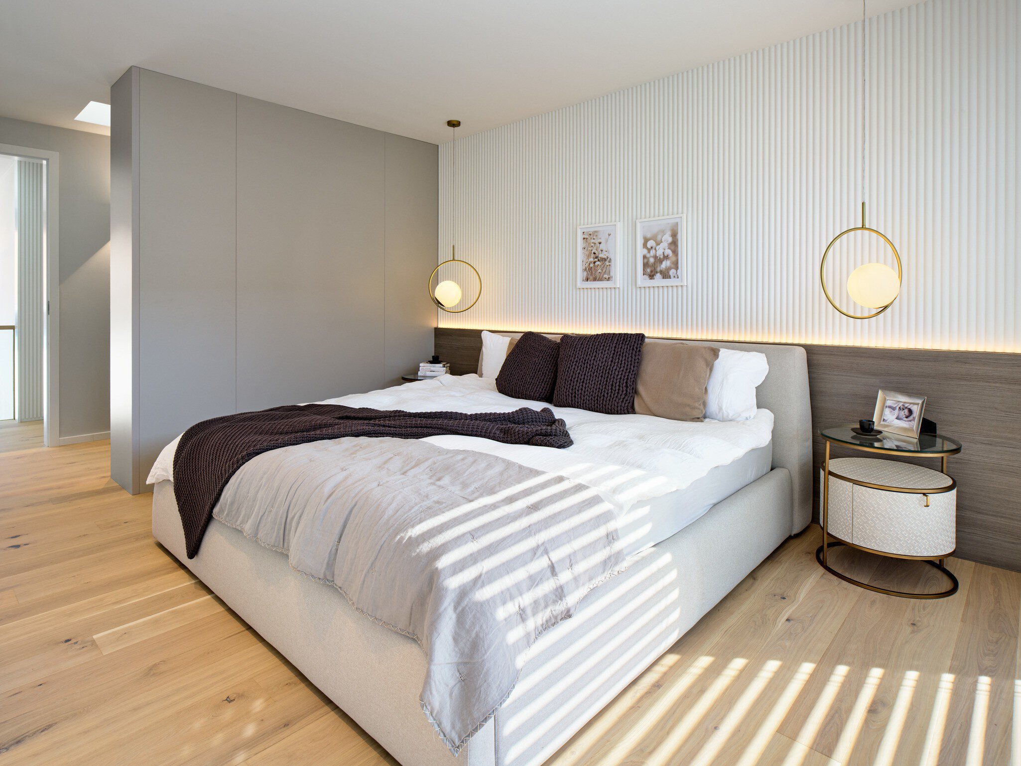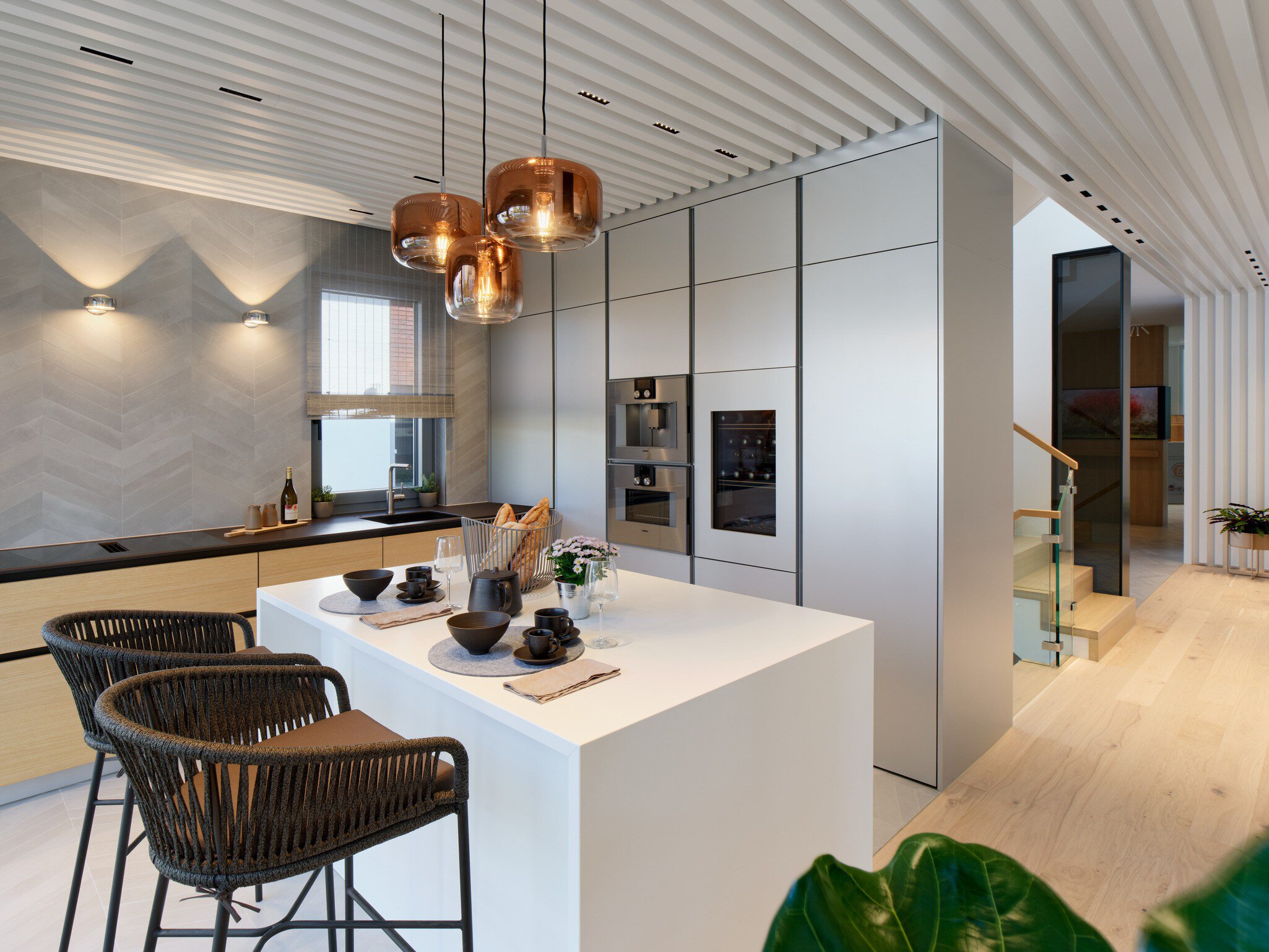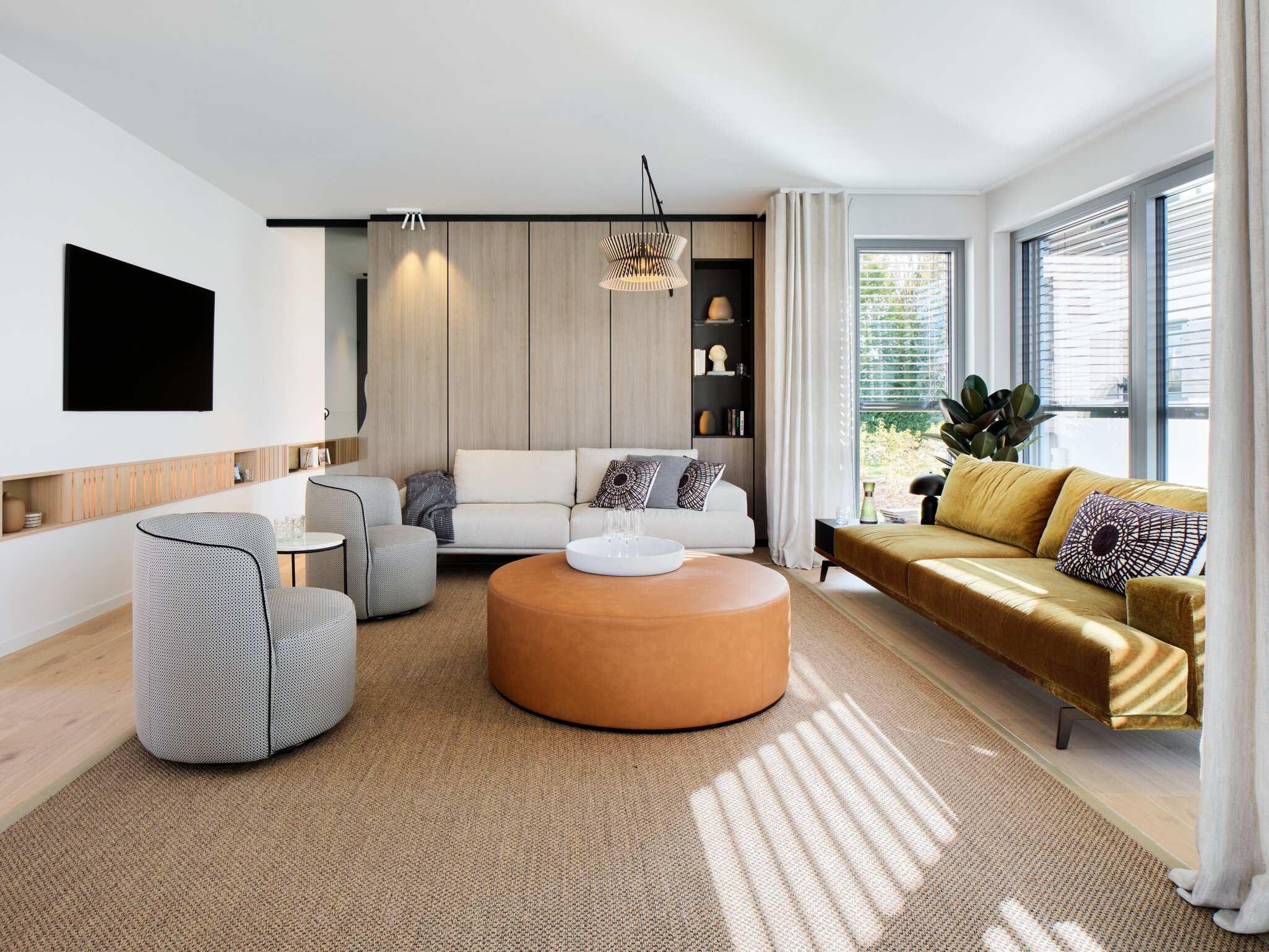 Die moderne Villa wurde von dem Architekten Hamid von Berg-Hadjoudj entworfen und von Villa Projects, einem namhaften Innenarchitekturbüro, weiterentwickelt. Die Basis ist ein klarer, weißer Kubus, der durch auskragende Elemente akzentuiert wird. Für viel Transparenz sorgen großzügige Glasflächen. Die offene Struktur lässt die Grenzen zwischen Innen und Außen verschwimmen. Balkone und Terrassen laden zum Entspannen ein. Eine Doppelgarage grenzt direkt an das Haus an. Die Villa bietet mit über 200 Quadratmetern Wohnfläche großzügigen Raum für Familien oder Paare, die eine offene Architektur wertschätzen. Mit dem frei geplanten Architektenhaus stellt WeberHaus erneut unter Beweis, dass sich modernes Design, Premium-Qualität und eine nachhaltige Holzbauweise keineswegs ausschließen.