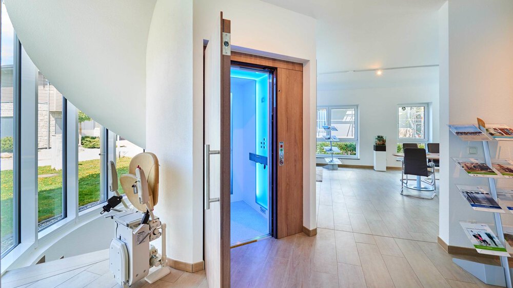 In unserem Ausstellungszentrum im Bauzentrum Poing präsentieren wir Ihnen in angenehmer Atmosphäre unseren VITMAX-Homelift in Kabinen und Plattformausführung, wo Ihnen die Möglichkeit zu unverbindlichen, kostenlosen Probefahrten geboten wird bzw. Sie gerne weiterführende Informationen erhalten.